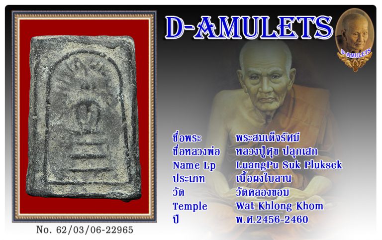 พระสมเด็จรัศมี หลวงปู่ศุข ปลุกวัดคลองขอม พ.ศ.2456-2460