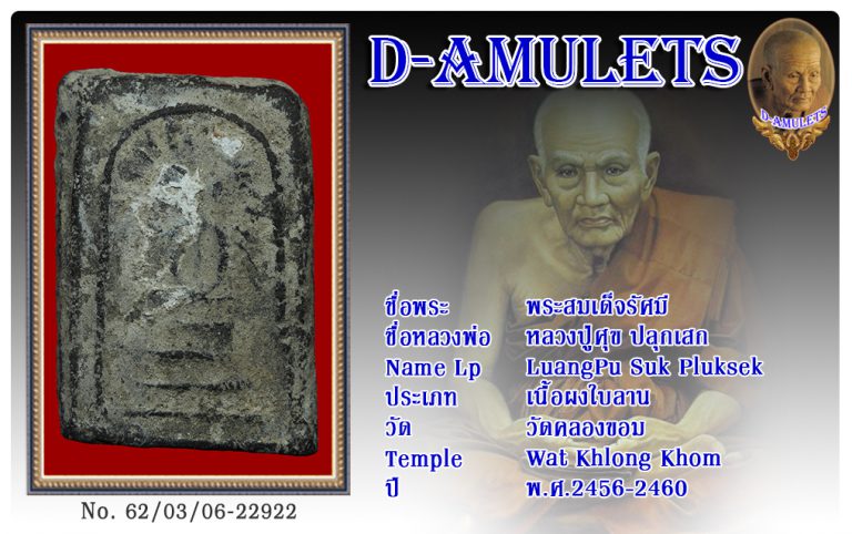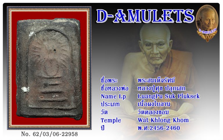 พระสมเด็จรัศมี หลวงปู่ศุข ปลุกเสก วัดคลองขอม พ.ศ.2456-2460
