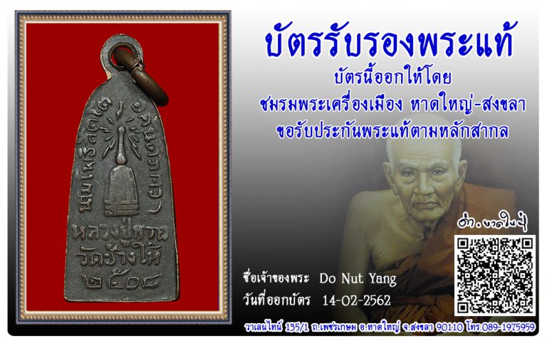 หลวงปู่ทวด หลังหนังสือ วัดช้างให้ พ.ศ.2505