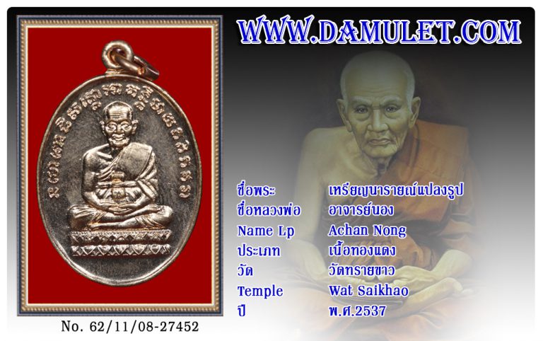 เหรียญนารายณ์แปลงรูป อาจารย์นอง วัดทรายขาว พ.ศ.2537