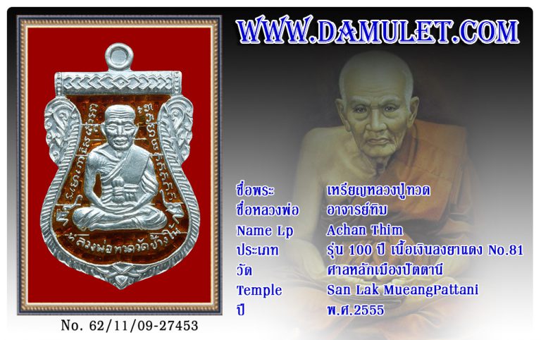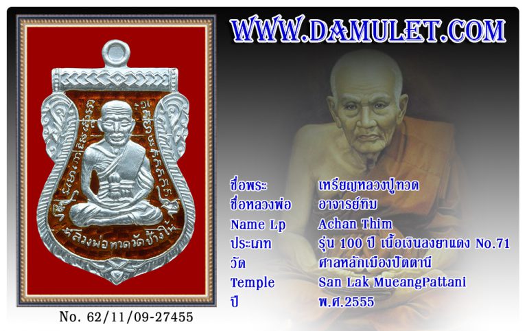 เหรียญหลวงปู่ทวด อาจารย์ทิม ศาลหลักเมืองปัตตานี พ.ศ.2555