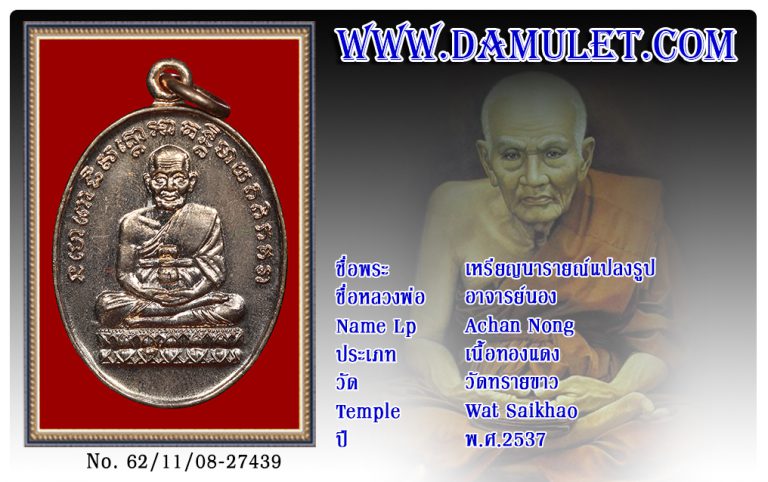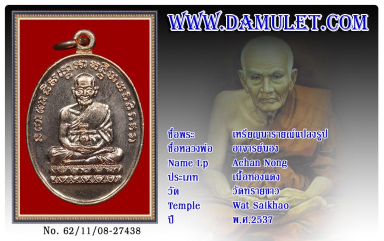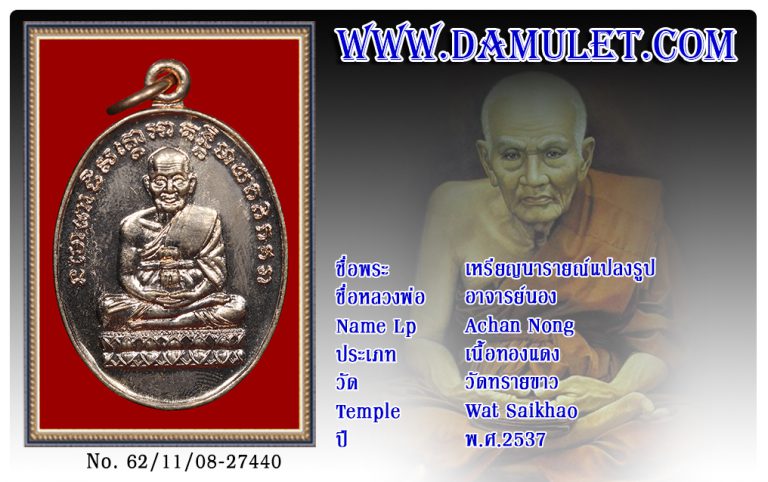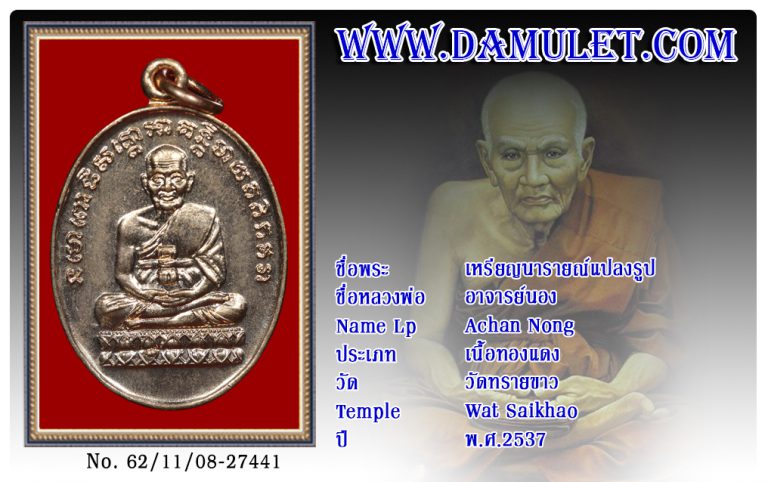 เหรียญนารายณ์แปลงรูป อาจารย์นอง วัดทรายขาว พ.ศ.2537