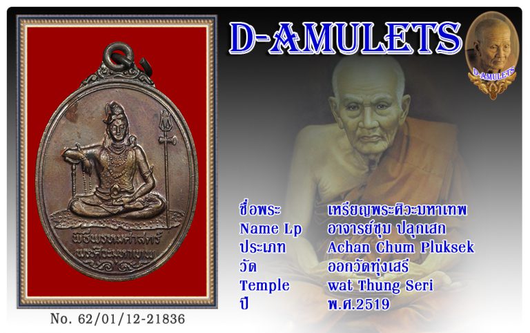 เหรียญพระศิวะมหาเทพ อาจารย์ชุม ปลุกเสก ออกวัดทุ่งเสรี พ.ศ.2519