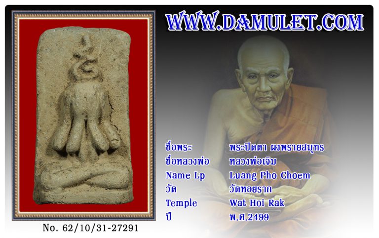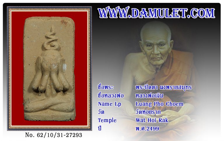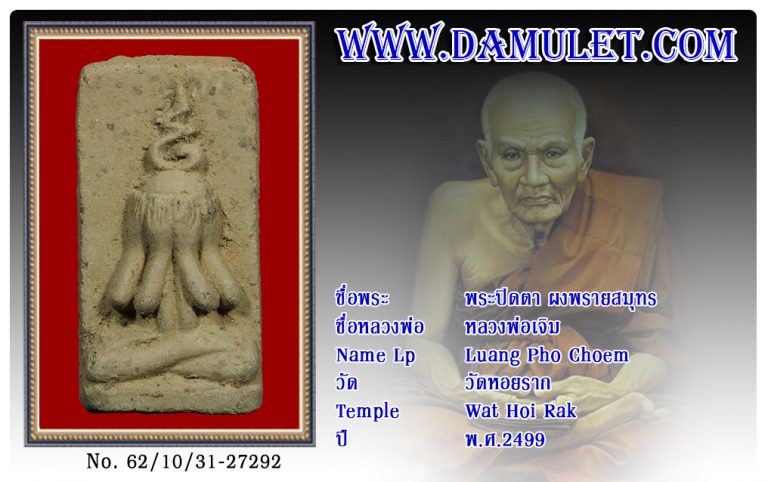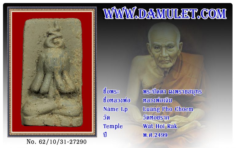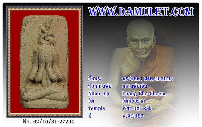 พระปิดตา ผงพรายสมุทร หลวงพ่อเจิม วัดหอยราก พ.ศ.2499