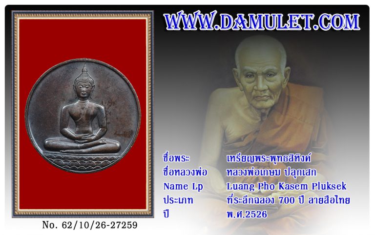เหรียญพะพุทธสิหิงค์ หลวงพ่อเกษม ปลุกเสก พ.ศ.2526