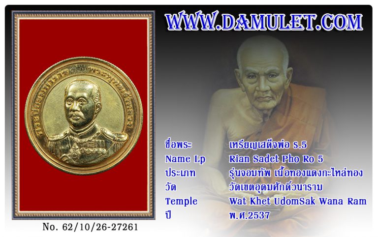 เหรียญเสด็จพ่อ ร.5 วัดเขาอุดมศักดิ์วนาราม พ.ศ.2537
