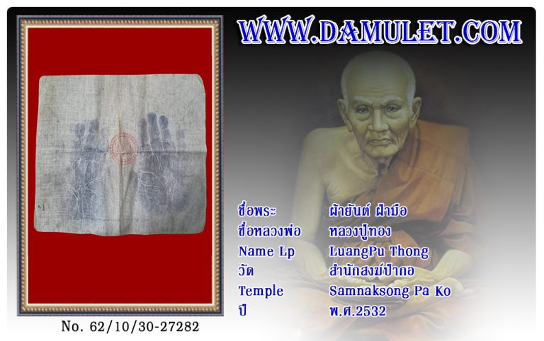 ผ้ายันต์ ฝ่ามือ หลวงปู่ทอง สำนักสงฆ์ป่ากอ