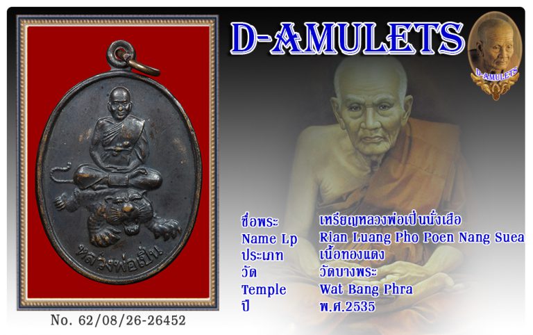 เหรียญหลวงพ่อเปิ่นนั่้งเสือ วัดบางพระ พ.ศ.2535