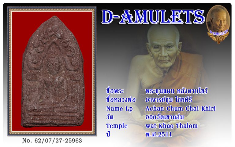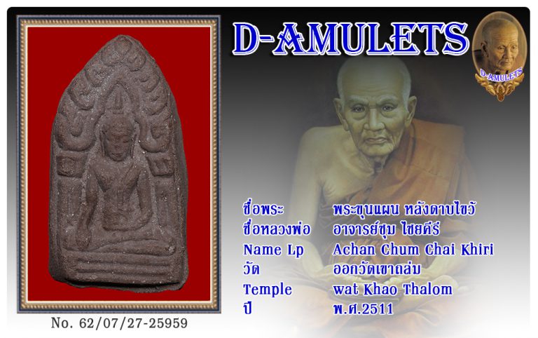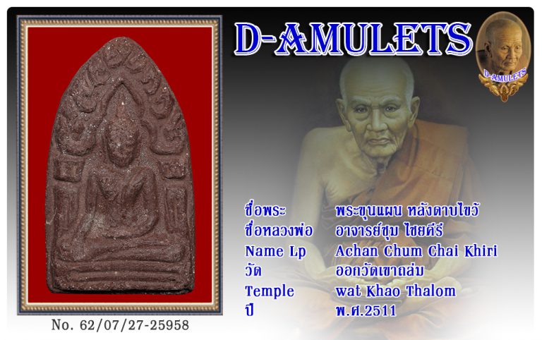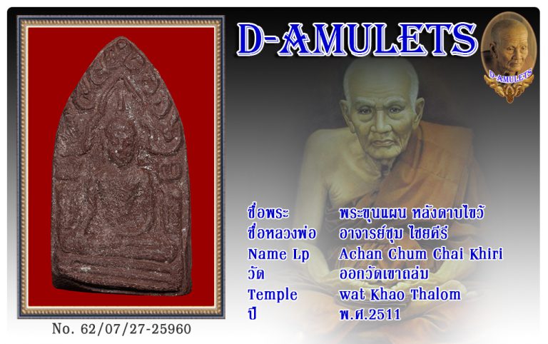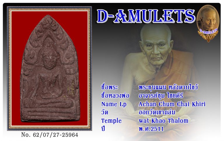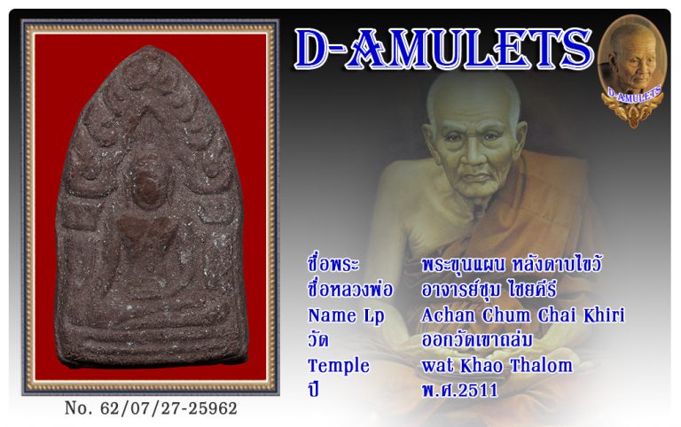 พระขุนแผน หลังดาไขว้ อาจารย์ชุม ไชยคีรี ออกวัดเขาถล่ม พ.ศ.2511