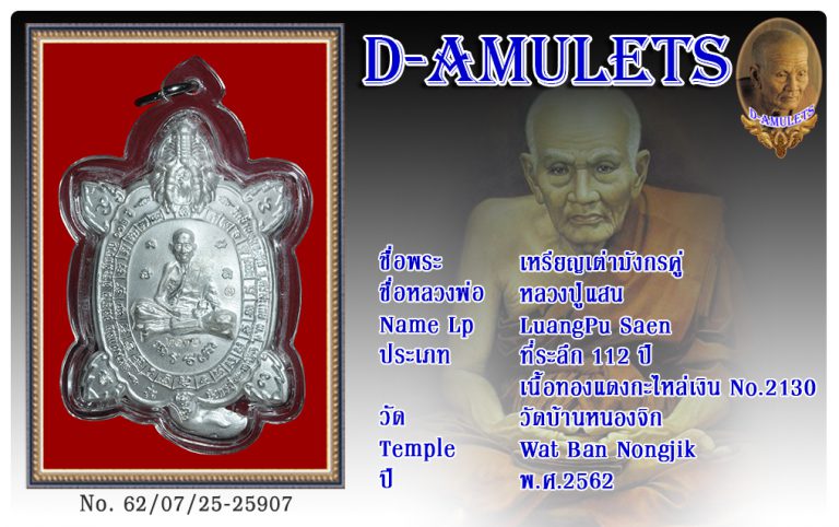 เหรียญเต่ามังกรคู่ หลวงปู่แสน วัดบ้านหนองจิก พ.ศ.2562