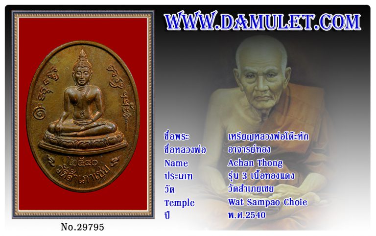 เหรียญหลวงพ่อโต๊ะหัก อาจารย์ทอง วัดสำเภาเชย พ.ศ.2540
