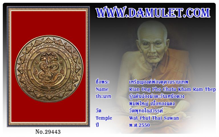 เหรียญองค์พ่อจตุคามรามเทพ วัดพุทธไธสวรรค์ พ.ศ.2550