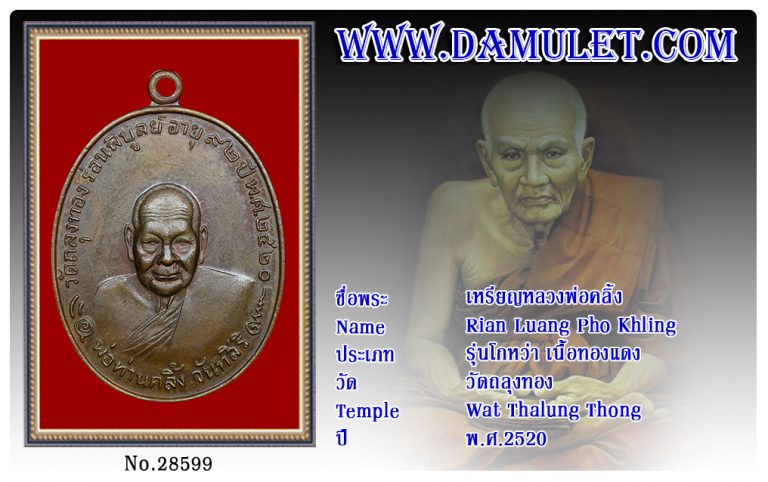 เหรียญหลวงพ่อคลิ้ง วัดถลุงทอง พ.ศ.2520
