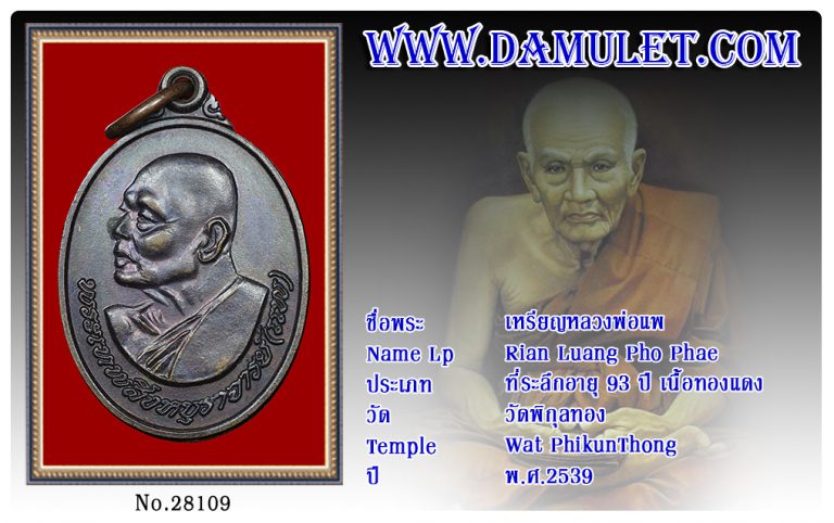 เหรียญหลวงพ่อแพ วัดพิกุลทอง พ.ศ.2539