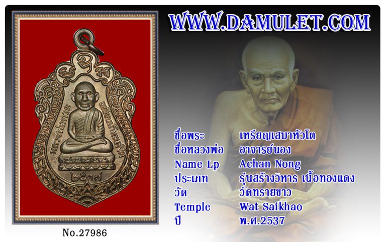 เหรียญเสมาหัวโต อาจารย์นอง วัดทรายขาว พ.ศ.2537