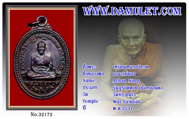 เหรียญหลวงปู่ทวด อาจารย์นอง วัดทรายขาว พ.ศ.2537