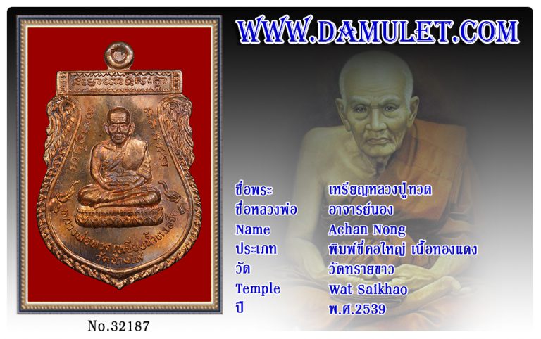 เหรียญหลวงปู่ทวด อาจารย์นอง วัดทรายขาว พ.ศ.2539