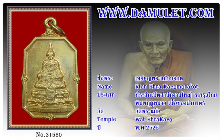 เหรียญพระแก้วมรกต วัดพระแก้ว พ.ศ.2525
