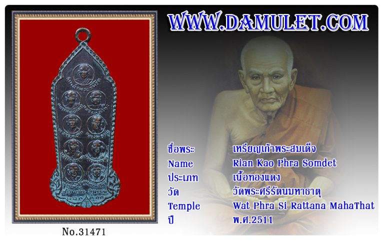 เหรียญเก้าพระสมเด็จ วัดพระศรีรัตนมหาธาตุ พ.ศ.2511