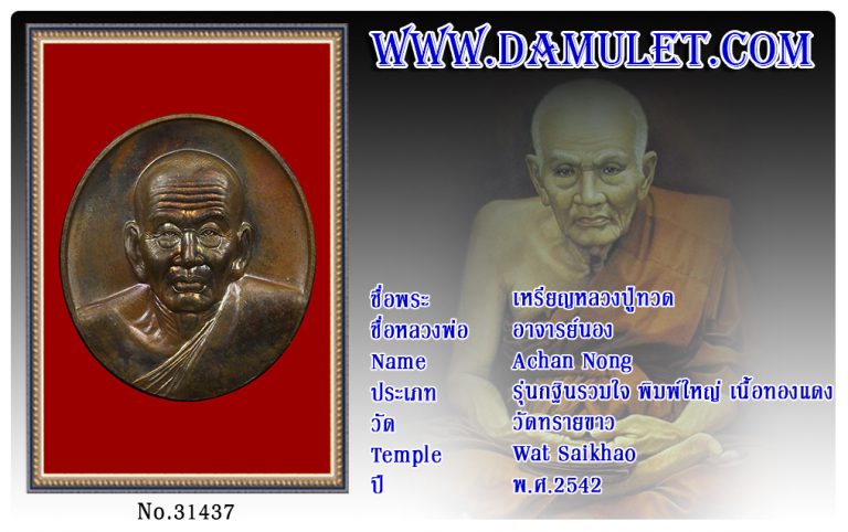 เหรียญหลวงปู่ทวด อาจารย์นอง วัดทรายขาว พ.ศ.2542