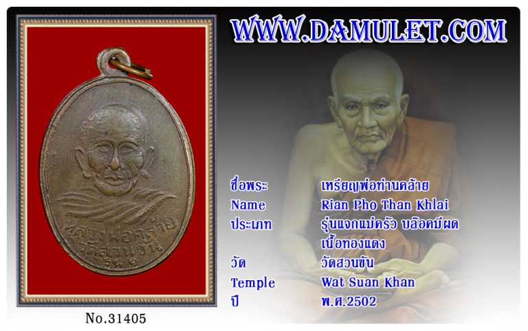 เหรียญพ่อท่านคล้าย วัดสวนขัน พ.ศ.2502
