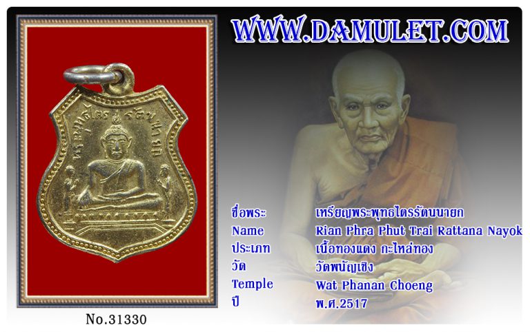 เหรียญพระพุทธไตรรัตนนายก วัดพนัญเชิง พ.ศ.2517