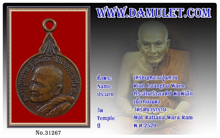 เหรียญหลวงปู่แหวน วัดรัตนวราราม พ.ศ.2520