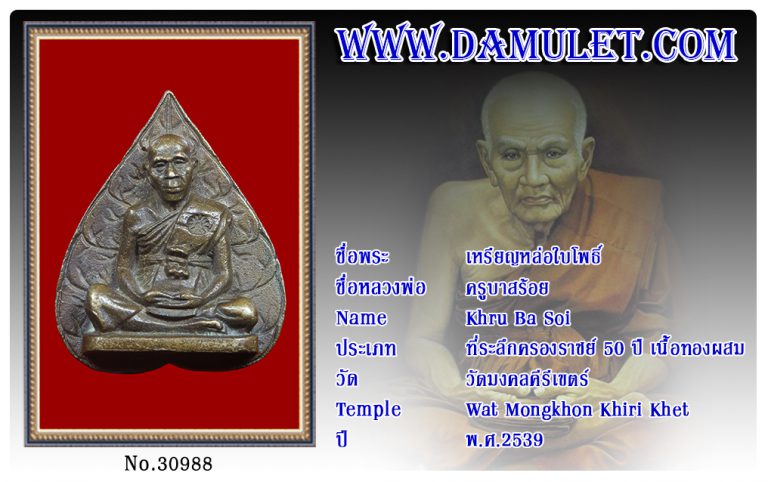 เหรียญหล่อใบโพธิ์ ครูบาสร้อย วัดมงคลคีรีเขตร์ พ.ศ.2539