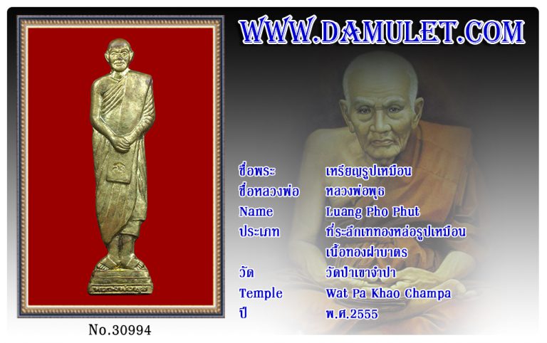 เหรียญรูปเหมือน หลวงพ่อพุธ วัดป่าเขาจำปา พ.ศ.2555