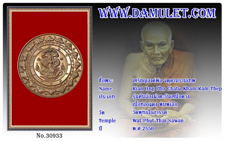 เหรียญองค์พ่อจตุคามรามเทพ วัดพุทธไธสวรรค์ พ.ศ.2550