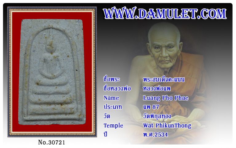 พระสมเด็จคะแนน หลวงพ่อแพ วัดพิกุลทอง พ.ศ.2534