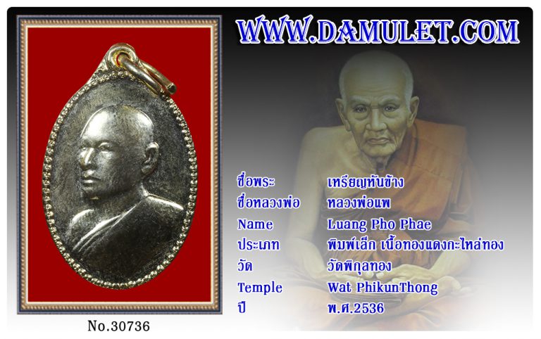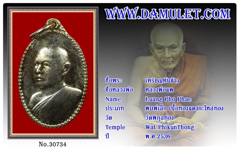 เหรียญหันข้าง หลวงพ่อแพ วัดพิกุลทอง พ.ศ.2536