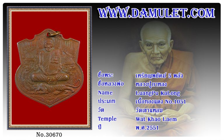 เหรียญพยัคฆ์ 5 พลัง หลวงปู่กาหลง วัดเขาแหลม พ.ศ.2551