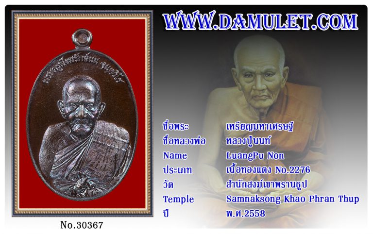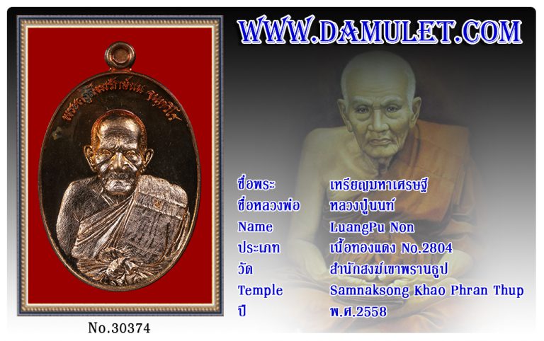 เหรียญมหาเศรษฐี หลวงปู่นนท์ สำนักสงฆ์เขาพรานธูป พ.ศ.2558