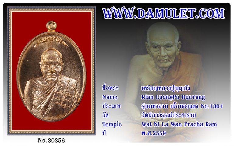เหรียญหลวงปู่บุญยัง วัดนิลาวรรณ์ประชาราม พ.ศ.2559