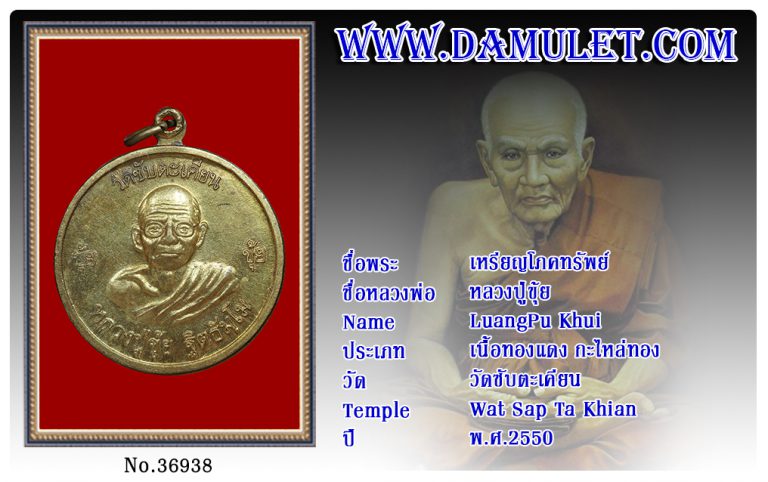 เหรียญโภคทรัพย์ หลวงปู่ขุ้ย วัดซับตะเคียน พ.ศ.2550