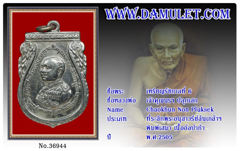 เหรียญรัชกาลที่ 6 เจ้าคุณนรฯ ปลุกเสก พ.ศ.2505