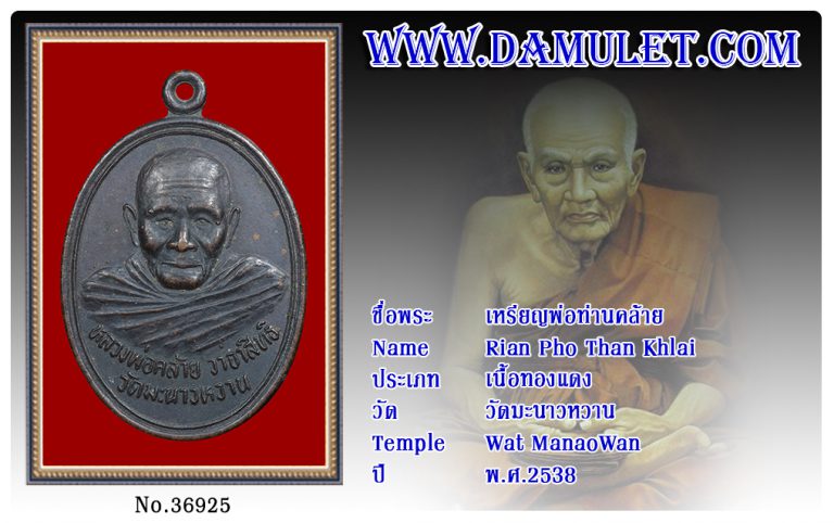 เหรียญพ่อท่านคล้าย วัดมะนาวหวาน พ.ศ.2538