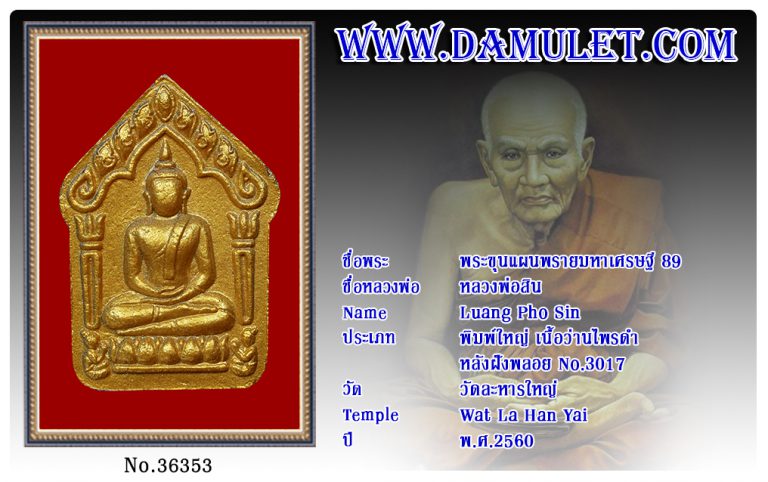 พระขุนแผนพรายมหาเศรษฐี 89 หลวงพ่อสิน วัดละหารใหญ่ พ.ศ.2560