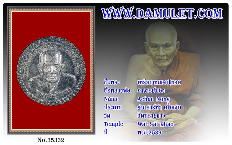 เหรียญหลวงปู่ทวด อาจารย์นอง วัดทรายขาว พ.ศ.2539