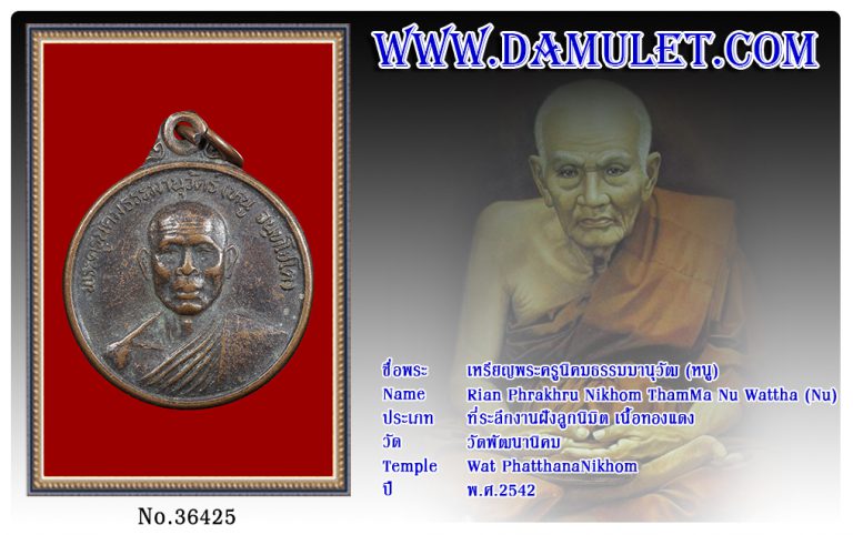 เหรียญพระครูนิคมธรรมมานุวัฒ (หนู) วัดพัฒนานิคม พ.ศ.2542