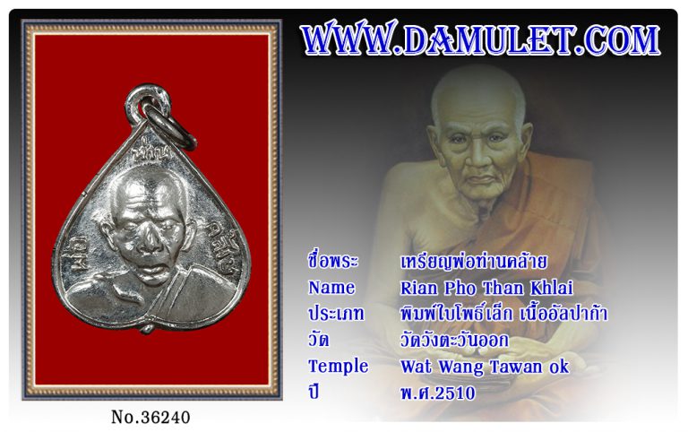 เหรียญพ่อท่านคล้าย วัดวังตะวันออก พ.ศ.2510