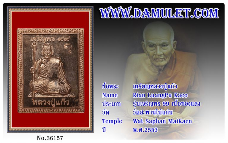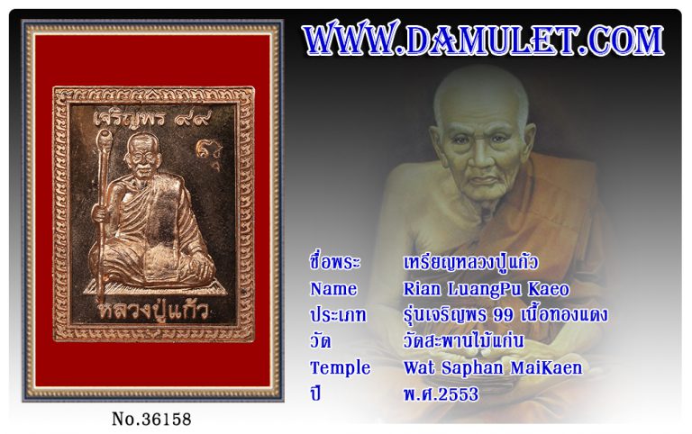 เหรียญหลวงปู่แก้ว วัดสะพานไม้แก่น พ.ศ.2553