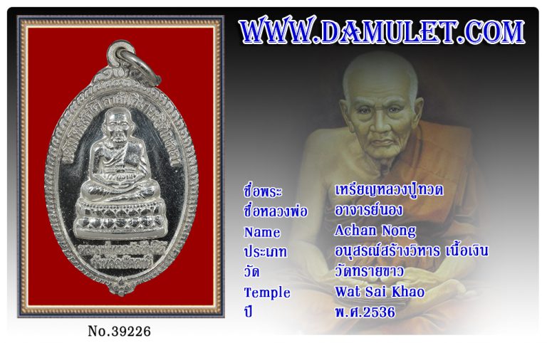 เหรียญหลวงปู่ทวด อาจารย์นอง วัดทรายขาว พ.ศ.2539