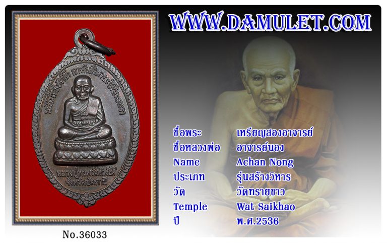 เหรียญสองอาจารย์ อาจารย์นอง วัดทรายขาว พ.ศ.2536
