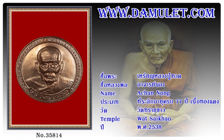 เหรียญหลวงปู่ทวด อาจารย์นอง วัดทรายขาว พ.ศ.2538