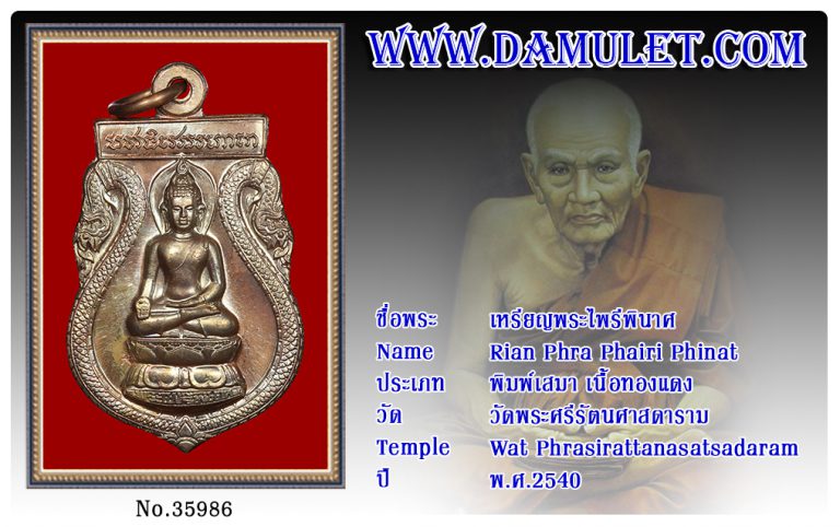 เหรียญพระไพรีพินาศ วัดพรศรีรัตนศาสดาราม พ.ศ.2540