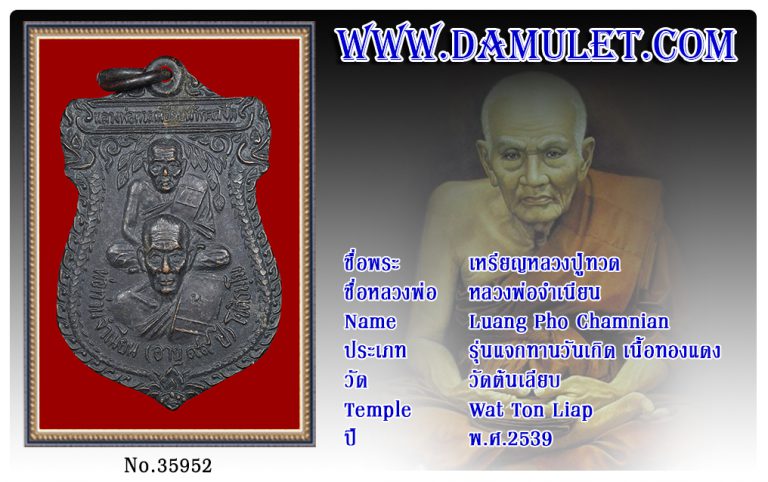 เหรียญหลวงปู่ทวด หลวงพ่อจำเนียน วัดต้นเลียบ พ.ศ.2539