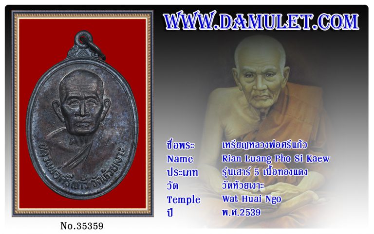 เหรียญหลวงพ่อศรีแก้ว วัดห้วยเงาะ พ.ศ.2539