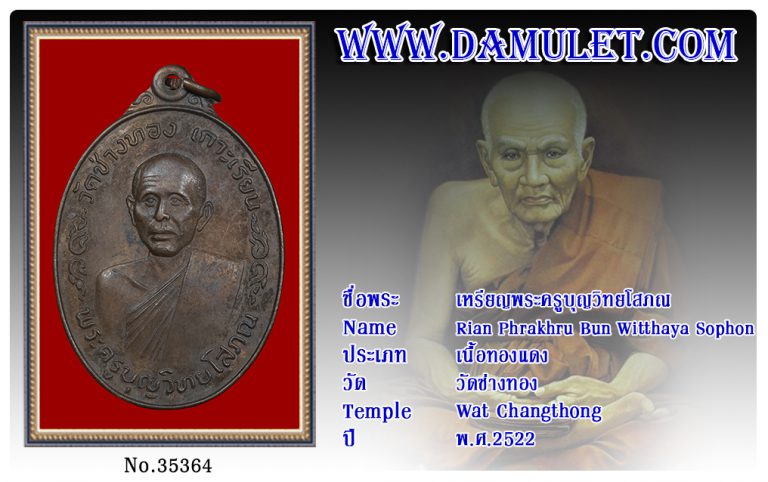 เหรียญพระครูบุญวิทยโสภณ วัดช่างทอง พ.ศ.2522